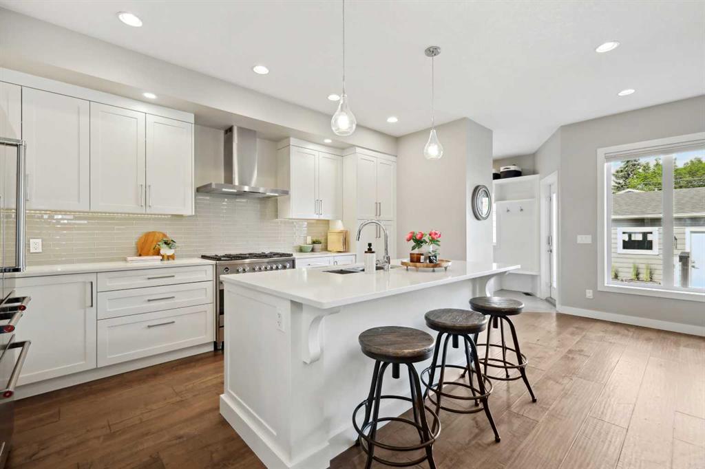 ***OPEN HOUSE CANCELED*** Welcome to 4340 19 Ave NW in the centrally located community of Montgomery. This beautifully designed 4-bedroom, 3.5-bathroom home features many upgrades throughout including Central Air Conditioning and 9-foot ceilings. Upon entering the home you’re greeted by a cozy living area flanked by the central staircase and stunning maple engineered hardwood that lead you into a beautifully designed kitchen. With high end appliances, quartz countertops, large white cabinets and soft close drawers this kitchen is a dream. Open to the dining area which is flanked by a built-in desk area for those work from home days or homework nights. A generous mudroom at the back entryway provides plenty of room to store all your items. Moving upstairs, your new primary bedroom features a gorgeous 5pc ensuite leading to an expansive walk-in closet. The laundry room located upstairs for convenience is accompanied by two more bedrooms and a 4 pc bathroom which complete this well laid out second floor. The spacious basement layout opens to a large rec room with plenty of space for all your needs. Currently set up as a home gym, the possibilities are endless with space for a big couch and entertaining area, and a play area for the kids. The 4th bedroom and another 4pc bathroom provides a retreat for guests or an older child. The private east facing backyard features a large functional deck and well landscaped green space leading to your double detached garage. Only steps from the Bow River, with easy access to the Trans Canada, Stoney Trail, The Bowness neighborhood amenities and the trendy University District, this location is fantastic for getting outside and enjoying everything Calgary has to offer. Don't miss out on this incredible opportunity! Note: Hot water tank replaced in 2022. AC unit is serviced annually.