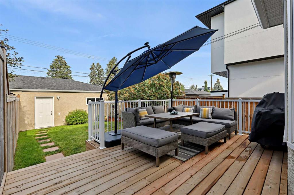 Welcome to 2033 27th St SW in the beautiful inner-city community of Killarney. This well cared for home features hardwood floors throughout the main floor, a sunny kitchen, a west facing backyard with a brand-new cedar deck and an oversized double garage. Equipped with Central Air Conditioning and NO CONDO FEES, this semi-detached home in the heart of Killarney is a can’t miss. Immediately upon entering the home, you’ll notice the 9-foot ceilings and open feel of this lovely home. Centered by a gas burning fireplace the living room seamlessly adjoins the dining area making it a great space for family gatherings. The sunny kitchen space features granite countertops, white cabinets, tile flooring, and stainless-steel appliances. Walking out your back door you’ll be drawn to the gorgeous outdoor space that has been crafted with a brand-new cedar deck, ample yard space and oversized double garage. Heading upstairs, you’ll find your primary bedroom with a cheater 4-piece ensuite bathroom with a jetted tub and stand-up shower, and two large closet storage spaces. Rounding out this floor is a second bedroom ideal for an office or child, and your convenient upstairs laundry – no more running downstairs to throw in the next load. The basement features a fantastic recreational space with built in shelving and storage. The den space in the basement, which can easily be used a bedroom, features a 3-piece ensuite bathroom and additional storage both in the room and through to the utility space. With proximity to parks and playgrounds, blocks from the Killarney Aquatics and Rec Centre, minutes from 17th Ave and Westbrook Mall shopping and restaurants, and easy access to Crowchild Trail, 26th Avenue, and city transit, this location can’t be beat. Call your favourite Realtor today to book your showing!