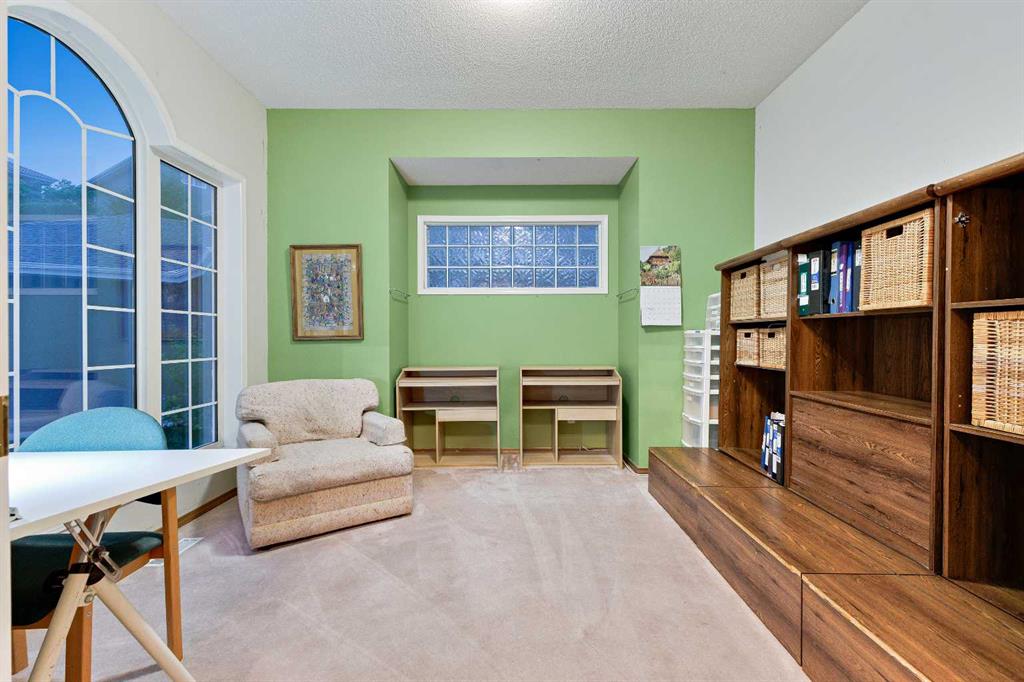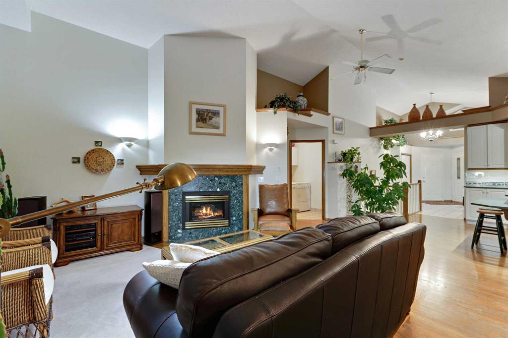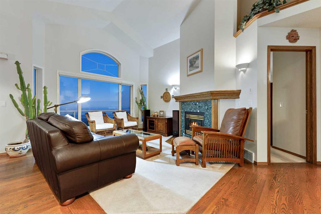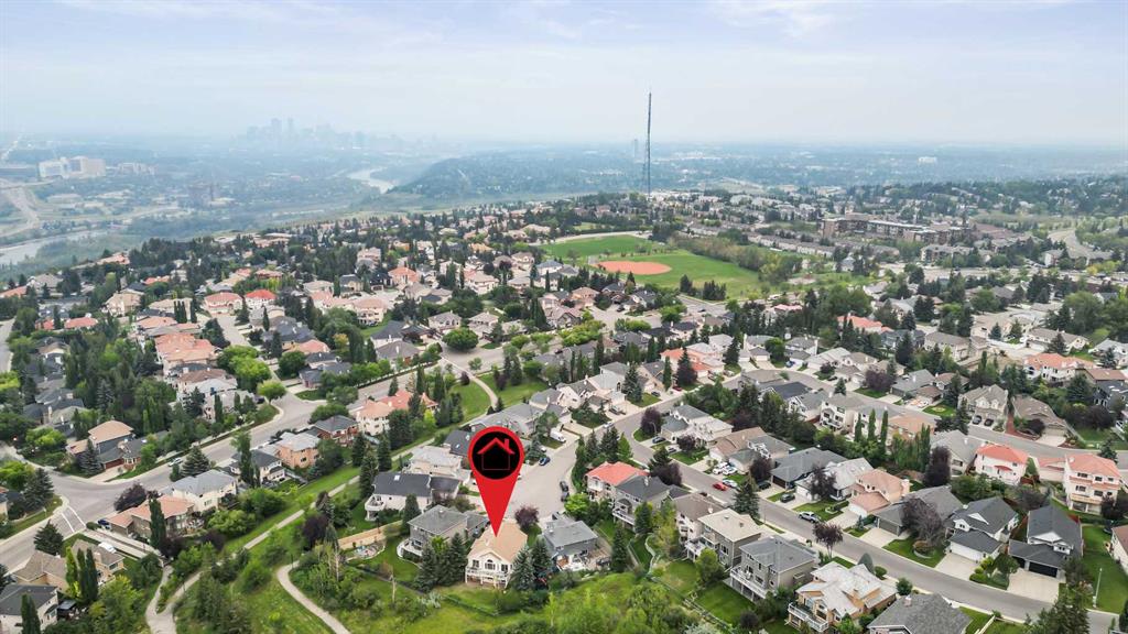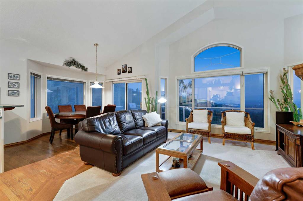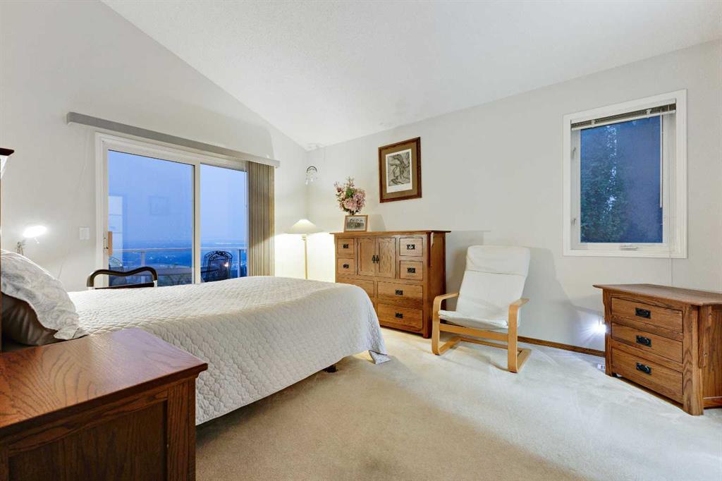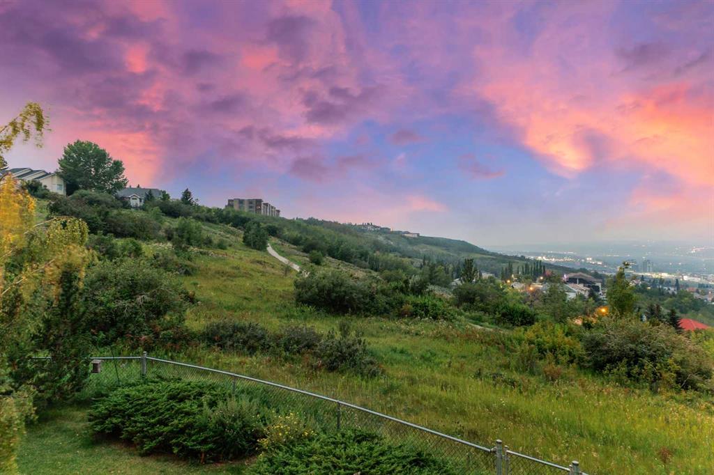 ~~ Open House - Saturday, September 6 from 1:00 - 3:00 ~~ WALK-OUT BUNGALOW with incredible PANORAMIC VIEW of the Bow River Valley and Nose Hill. Wonderful Patterson location that backs onto greenbelt, intricate path system and parks. With over 2500 square feet of living space, this well-designed home is perfect for empty-nesters and families alike. Tucked away on a quiet street with double attached garage boasting a large driveway. Large front foyer opens onto a sunny den which is an ideal spot to curl up with a good book. Open concept kitchen adjoins the dining room and living room featuring vaulted ceilings, gas fireplace and large windows to showcase the view. Large, raised deck is accessible from dining area and from primary suite, which includes 4-piece ensuite and walk-in closet. Second bedroom and 4-piece guest bath plus a main floor laundry room complete the main floor. Basement development includes a cosy Family Room with wet bar and a large Recreation Room with free-standing gas fireplace. The third bedroom and a 4-piece bath provide ideal privacy for guests. There is a large office on this level that could easily double as a fourth bedroom. The spacious furnace/utility room provide ample storage. The concrete basement floor is roughed-in for in-floor hot water heat. Central vacuum system is also housed in the utility room. There is a separate walk-out access to lower patio and the very private, fenced back yard with access to “Shay Trail”. Built in 1995 by Jayman Homes, this well-designed home with great bones is waiting to be transformed by your imagination, flair and creativity. Don’t miss out. Call your favourite Realtor today for a private showing.