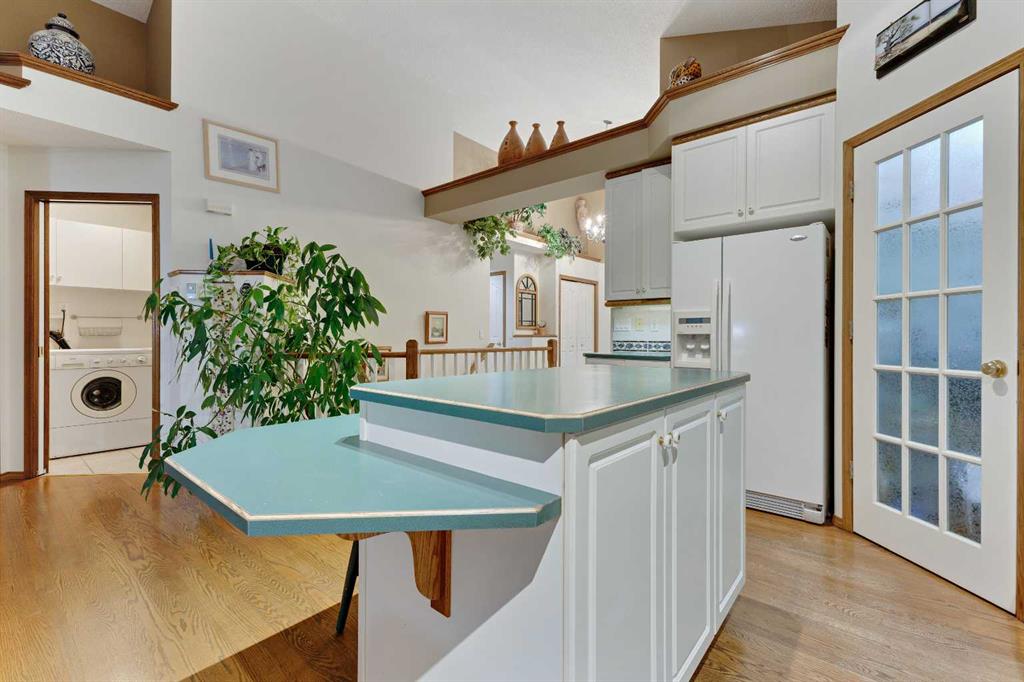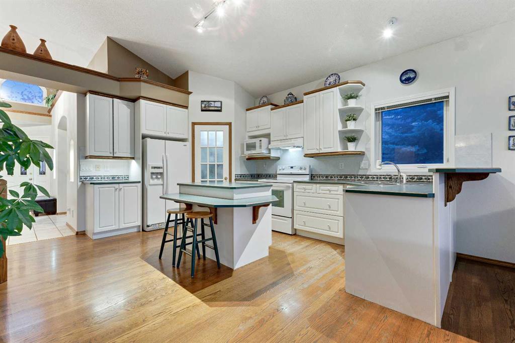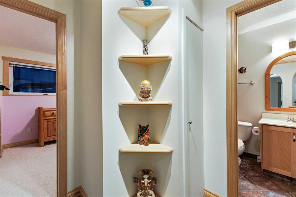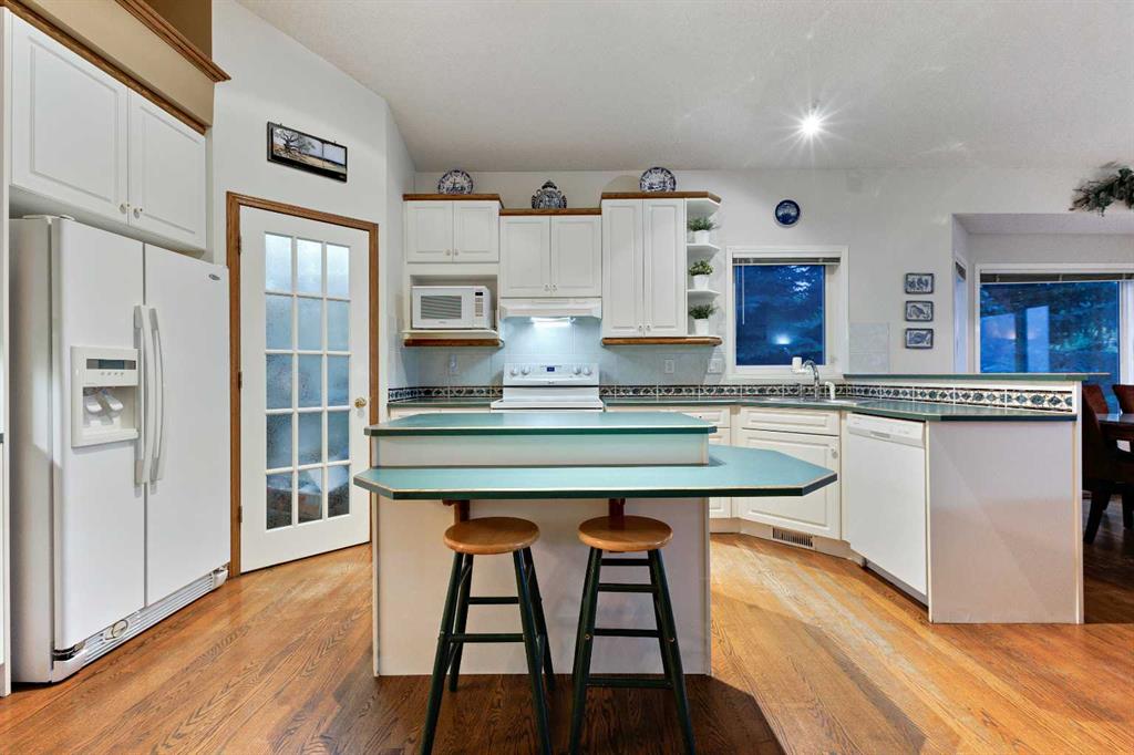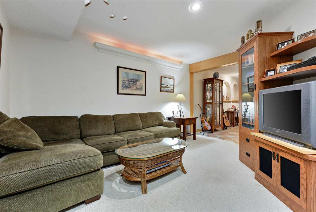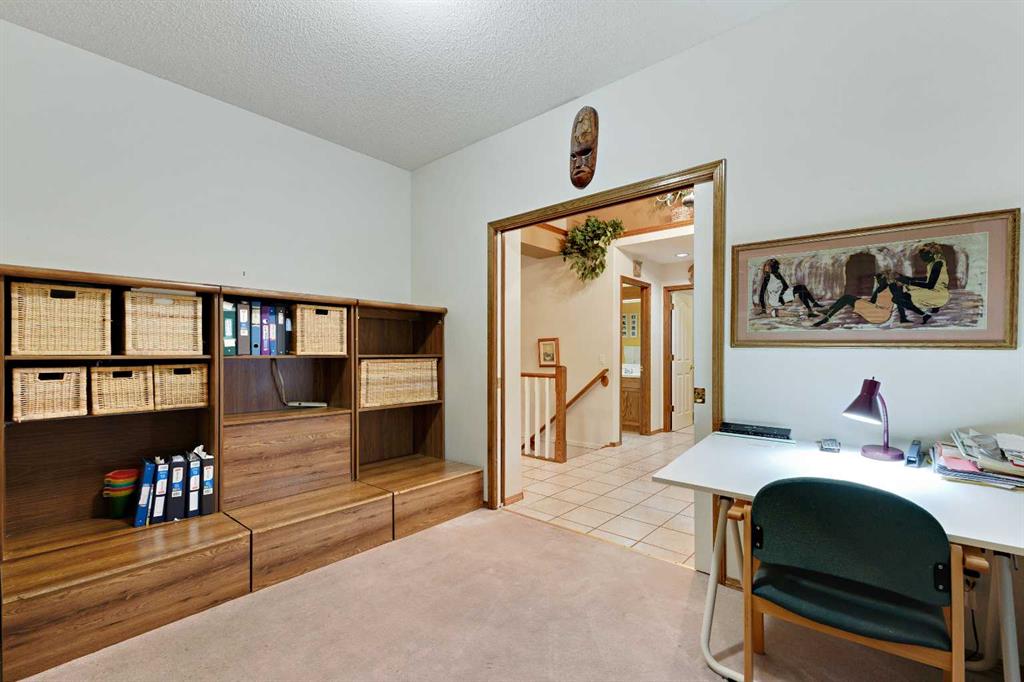 ~~ Open House - Saturday, September 6 from 1:00 - 3:00 ~~ WALK-OUT BUNGALOW with incredible PANORAMIC VIEW of the Bow River Valley and Nose Hill. Wonderful Patterson location that backs onto greenbelt, intricate path system and parks. With over 2500 square feet of living space, this well-designed home is perfect for empty-nesters and families alike. Tucked away on a quiet street with double attached garage boasting a large driveway. Large front foyer opens onto a sunny den which is an ideal spot to curl up with a good book. Open concept kitchen adjoins the dining room and living room featuring vaulted ceilings, gas fireplace and large windows to showcase the view. Large, raised deck is accessible from dining area and from primary suite, which includes 4-piece ensuite and walk-in closet. Second bedroom and 4-piece guest bath plus a main floor laundry room complete the main floor. Basement development includes a cosy Family Room with wet bar and a large Recreation Room with free-standing gas fireplace. The third bedroom and a 4-piece bath provide ideal privacy for guests. There is a large office on this level that could easily double as a fourth bedroom. The spacious furnace/utility room provide ample storage. The concrete basement floor is roughed-in for in-floor hot water heat. Central vacuum system is also housed in the utility room. There is a separate walk-out access to lower patio and the very private, fenced back yard with access to “Shay Trail”. Built in 1995 by Jayman Homes, this well-designed home with great bones is waiting to be transformed by your imagination, flair and creativity. Don’t miss out. Call your favourite Realtor today for a private showing.